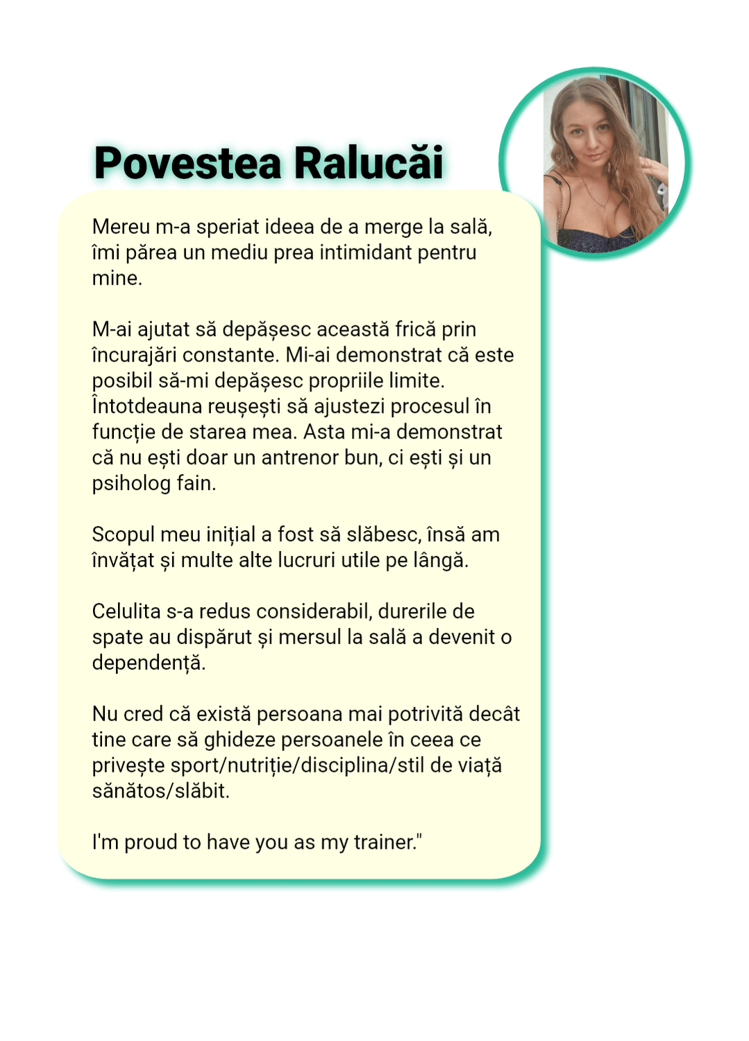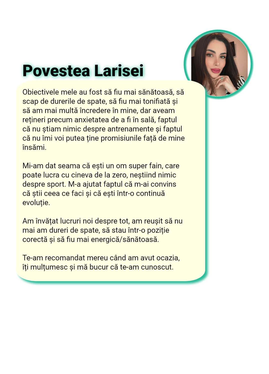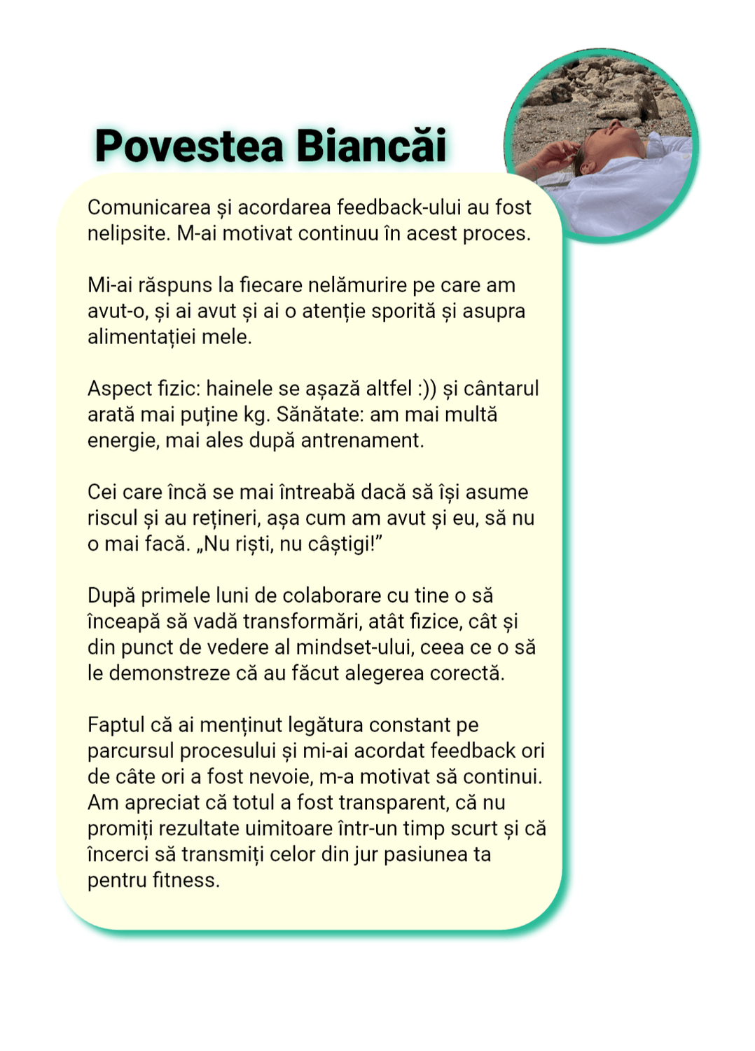Îți spun direct: nu lucrez cu oricine. Nu pentru că sunt “pretențios”, ci pentru că implicarea mea în procesul fiecărei femei este extrem de mare și îmi asum 100% responsabilitatea pentru rezultate.