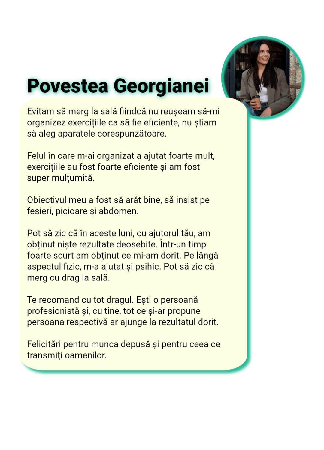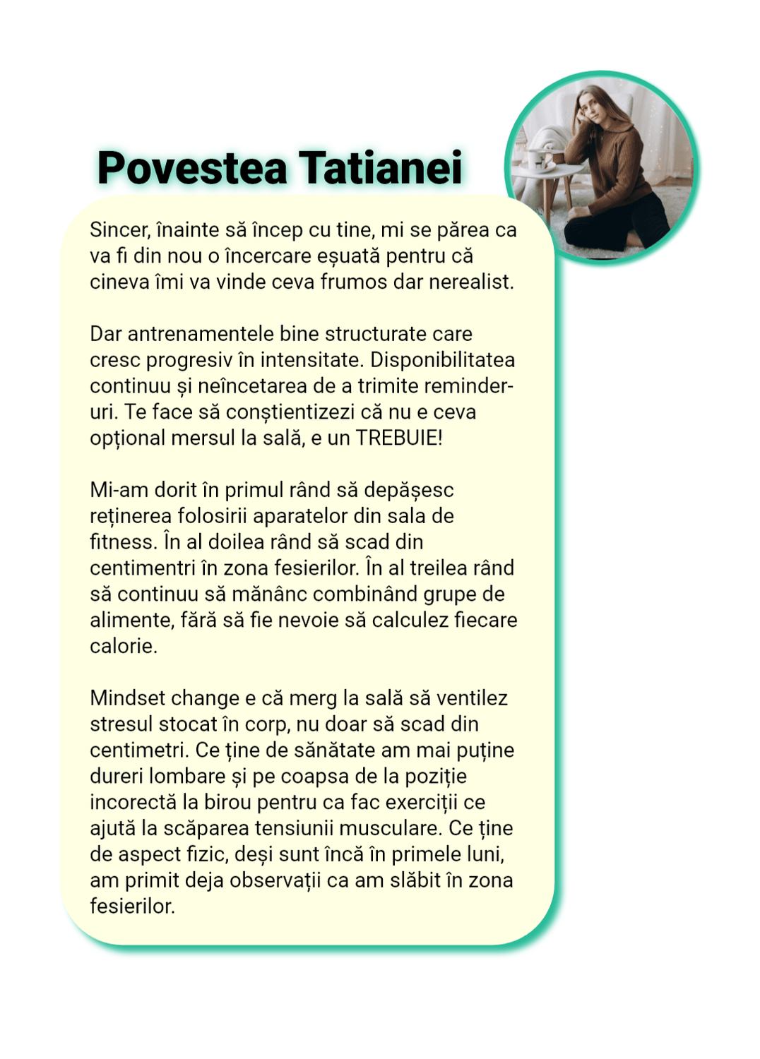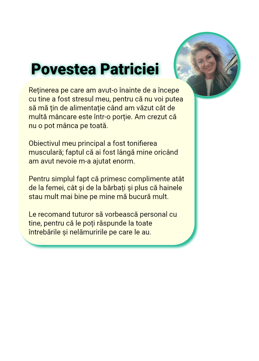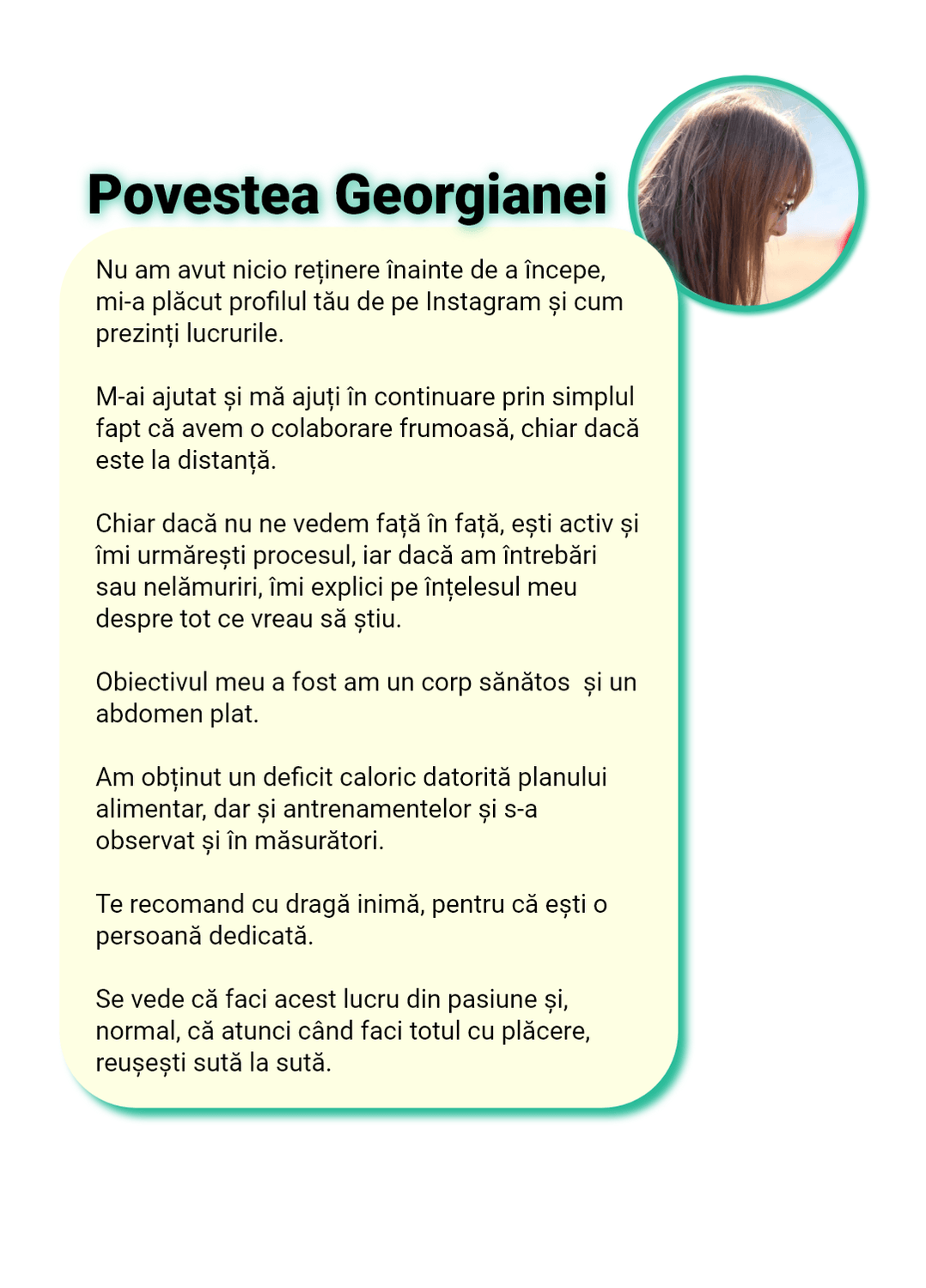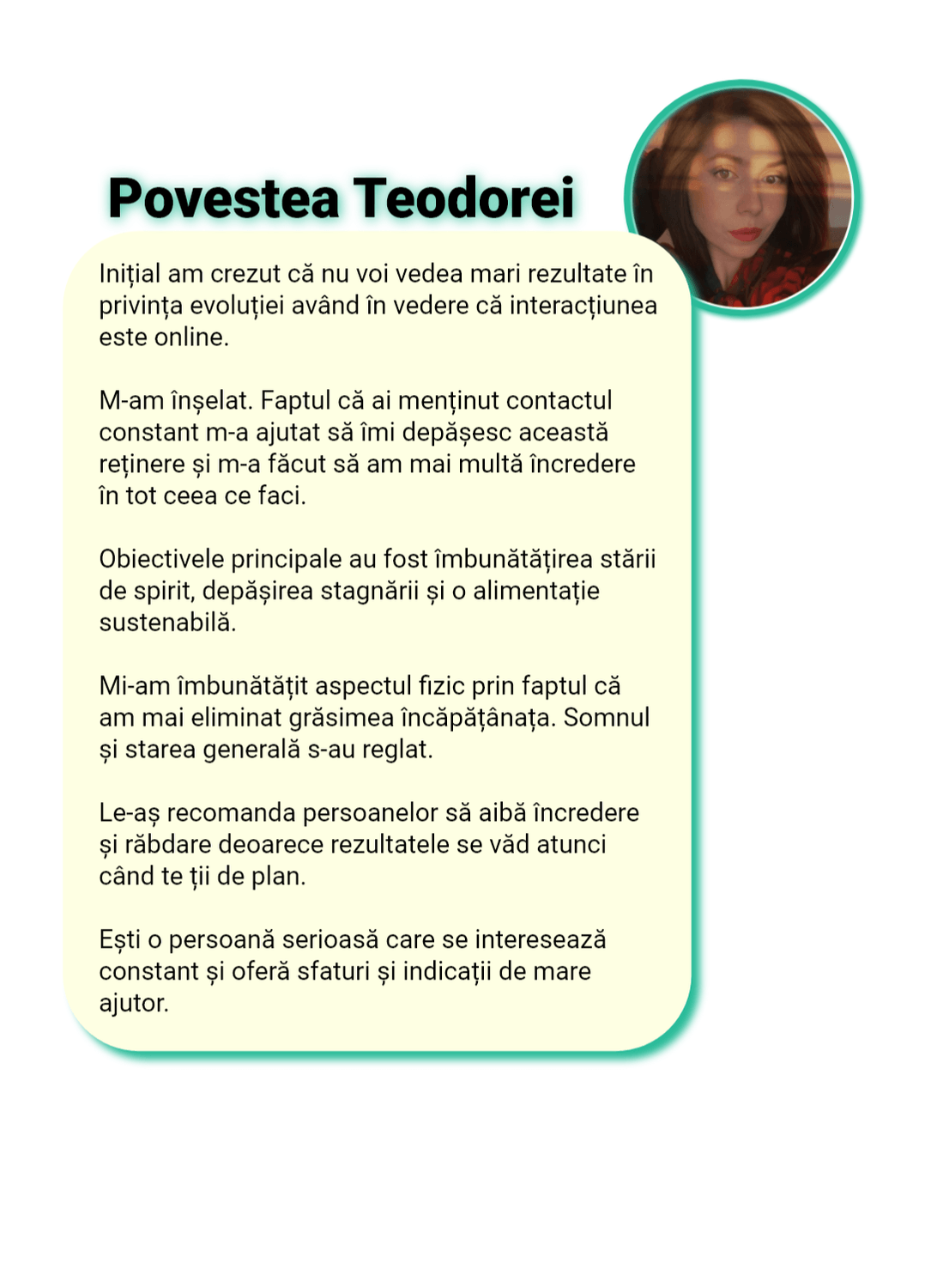 Sunt cu „ochii pe tine” în fiecare zi. Nu ca să te cert, ci ca să te sprijin, să te corectez rapid și să te țin pe direcția care te duce la rezultat, nu înapoi la efectul yo-yo.