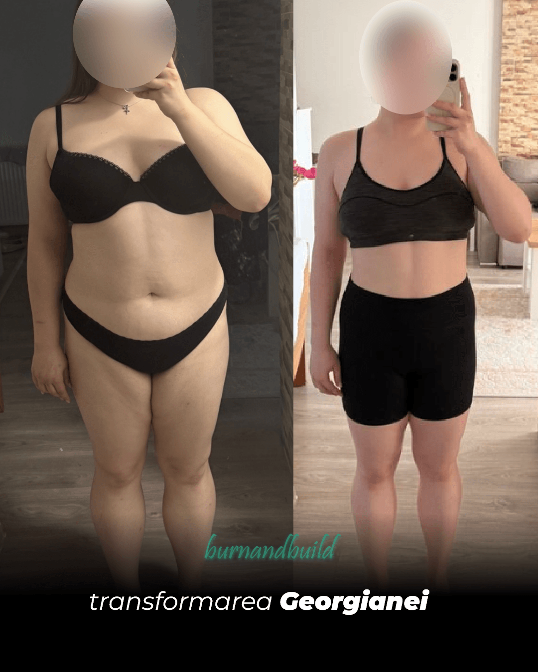 De aceea, în Burn & Build personalizez fiecare variabilă pentru fiecare femeie, iar aici ne referim la antrenamente, nutriție, timp disponibil, istoric medical și preferințe.